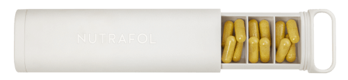 ‡ Limited time only, while supplies last. One gift per customer; cannot be combined with other offers or sales. Requires the purchase of a new Hair Growth Nutraceutical Subscription on nutrafol.com. Available to new subscribers only, age 18 or older. New subscribers will receive the gift of one pill case delivered with the initial subscription order. All complimentary gifts are subject to change or substitution at Nutrafol's discretion. All complimentary gifts are non-refundable and not otherwise exchangeable for cash, store credit, or product. Offer valid only on orders shipped within the United States. Not applicable to international orders. Void where prohibited. By participating in this offer, you agree to Nutrafol's Terms of Use.